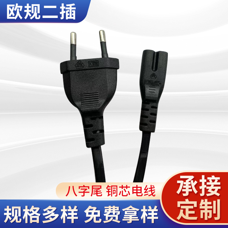 欧规八字尾电源线VDE欧标认证线铜芯两插电脑笔记本1.5米AC电线